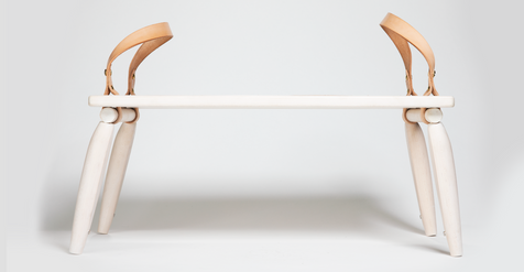 The Benjamin's collapsible wood turned legs and naturally treated leather straps allow for a graceful transition from breakfast table to work desk. It serves as the perfect companion for a beach picnic and a must have for small spaces in need of versatile, compact furniture. This design is crafted for both function and beauty with hidden, inlaid rare earth magnets and solid brass hardware.